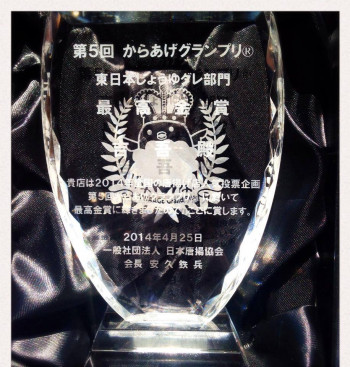 日本唐揚げ協会主催のからあげグランプリ醤油だれ部門連続最高金賞受賞!金賞5回受賞、手羽先部門でも最高金賞受賞!