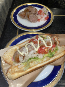 ブラジルの特大ソーセージ “リングイッサ”を挟んだホットドッグ。 <横濱ブラドッグ> 野菜のビネガーソースをかけたプレーン、フレッシュサルサソースをかけたサルサ、チーズをたっぷりかけたチーズの ボリュームたっぷりの3種類の味をお楽しみ下さい!