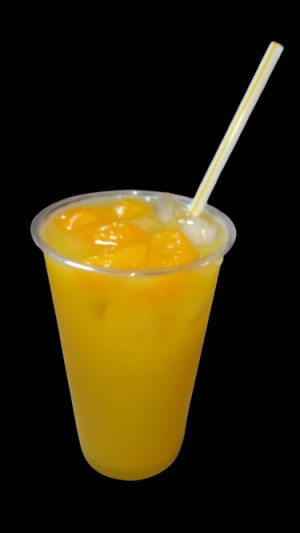 大きな粒が入ったみかんのジュース。ストローがスプーン状になってますので最後にすくって食べてね♪