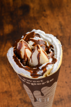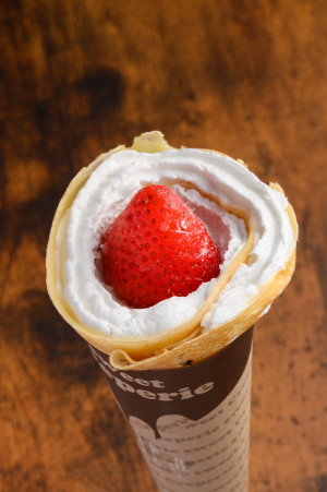程よい甘さのクリームとイチゴの酸味でさっぱりとした味わいのクレープです。