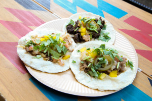 | 提供メニュー: | タコス5種(ジャークチキン、牛タン、カルニタス、カレーハラミ、スパイシーミンチ) フルーツドリンク |