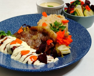 フランス南部の港町『セート』の郷土料理をオリジナルスタイルでアレンジしました。 にんにくやタイムでマリネした豚肩ロースを香ばしくグリルし、 ツナやバジルの入ったトマトソースで仕上げてあります。 味の決め手はにんにく風味のレモンマヨネーズです。