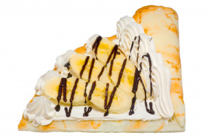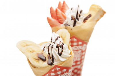 安定の一番人気クレープ。 ホイップクリーム、バナナ チョコソースの絶妙な組み合わせです。