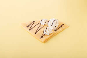 生地に、ホイップクリーム、 お好みのソースをかけて350円!! トッピングもいろいろありますので オリジナルクレープを作るのも おすすめです🤗