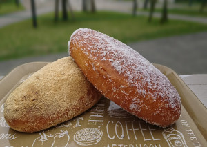 コッペパンは揚げたてで! サクッとふわっと熱々の揚げパンです。 きな粉やお砂糖お好みで召し上がれ♪