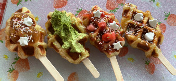 クロワッサンとワッフルの融合!韓国発のサクサクふわふわ新食感スイーツ!選べるトッピングは、ストロベリー、チョコソース、抹茶クリーム等豊富!季節限定メニュー等も楽しめます。