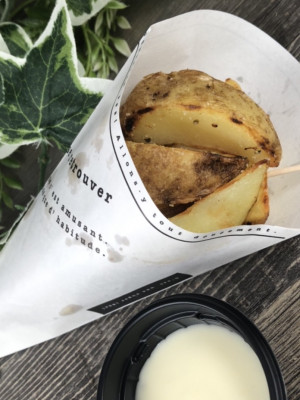 揚げポテトではなく、焼いて提供しています。 特製のアイオリソースと一緒にどうぞ!!