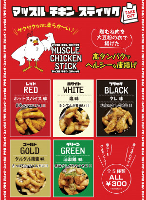 | 提供メニュー: | マッスルチキンスティック(唐揚げ)・悪魔のチョコバナナボウル |
