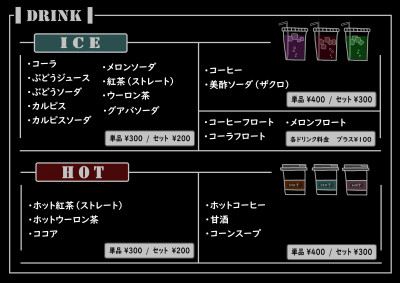 ドリンクメニューもたくさん用意しております。当店では拘りのコーヒー豆から挽いた、酸味が少なく美味しいコーヒーをご用意しております。