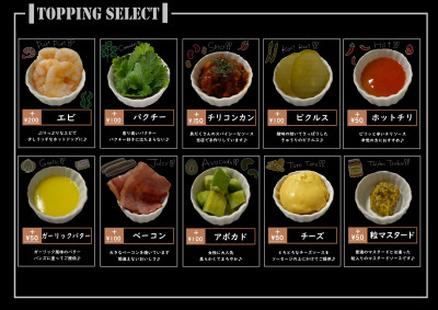 日替わりのトッピングをご用意しておりますので、お好きなトッピングとご一緒にお召し上がりください。