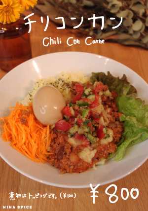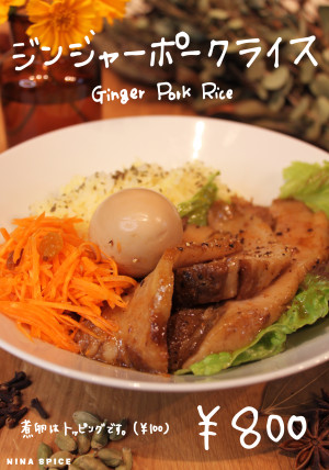 | 提供メニュー: | チリコンカン、タンドリーチキンライス 、ジンジャーポークライス |