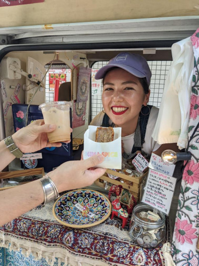 「NINA SPICEのニナ」 陽気でポップな23歳の店主です。 大学在学中にキッチンカーを始め、1年間東京を中心に活動していました。 父がイラン人なのもあり、色んなスパイスを幼い頃から味わっていました。 日本人にも合うスパイス料理を日々研究中!!