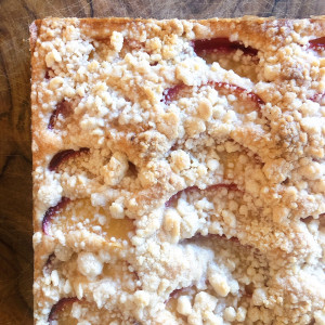 季節のフルーツを使いクランブルをたっぷりのせたケーキです。