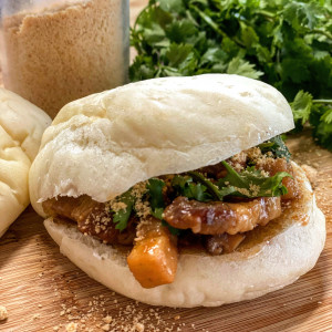 オリジナルのルーローパンはパンも無添加。 シンプルながら味わいのあるパンにおかかのルーローを挟みました。 他にもご要望にお答えしてメニューを追加することも可能です。