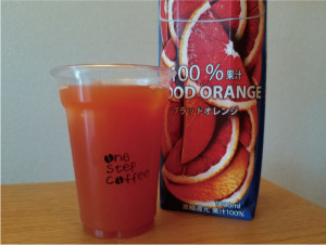 果汁100%の真っ赤なオレンジジュースです。ほどよい酸味とフルーティな甘みは、お食事のお供にもぴったり!