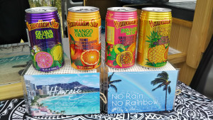 海老サンドにぴったり。 ハワイアンサンのグァバジュース、マンゴー、パッションフルーツ、パイナップルのラインナップです。
