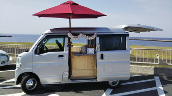 onoliciousのキッチンカーは小さくかわいい軽自動車です。 どんな場所にもぴったり合います。