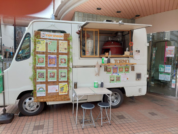 そんなお想いでキッチンカーを初めました。外観をシンプルに、薪窯はかわいくして、お客様へアツアツのピッツァ召し上がってもらいたい。薪窯の良さ伝えたいと日々営業しております。