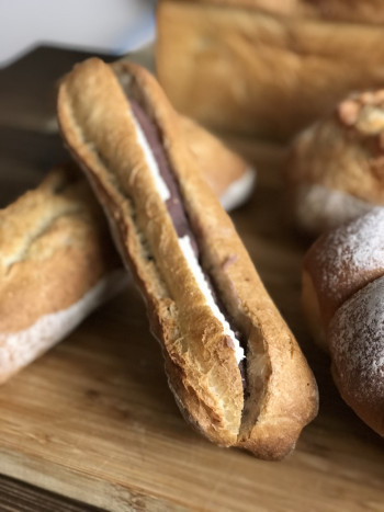 地場の湘南を使用したプチバケッドにこしあんとカルピスバターをサンドした一番人気のハード系のパンです。