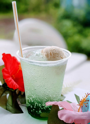 カラフルなクリームソーダになります。 アイスは3種類!バニラかストロベリーかチョコミントをお選び頂けます。 クリームソーダは6種類! ・シンフォニーブルー ・ハッピーストロベリー ・サングローオレンジ ・エメラルドグリーン ・シンデレラゴールド ・バイオレットパンジー