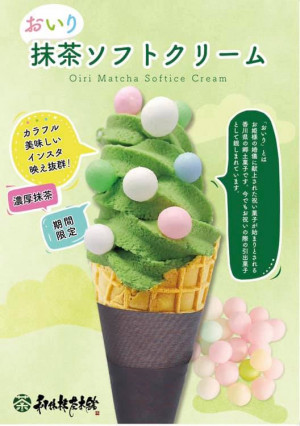 カラフルなおいりと抹茶のグリーンが相性抜群に可愛らしく、とても美味しい当店の人気商品です!