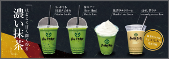 | 商品 | 抹茶ラテ ほうじ茶ラテ 抹茶ラテクリーム ほうじ茶ラテクリーム 抹茶チョコクリームラテ 抹茶白玉クリームラテ 抹茶グリーンティ 抹茶タピオカ コーヒー 抹茶フォンヂュ団子 抹茶わらび餅 抹茶生チョコアイス 抹茶ソフトクリーム 抹茶フォンダンショコラ |