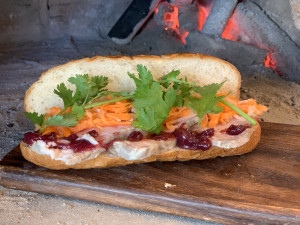 自家製のローストビーフにベリーソースをかけて挟んだオリジナルバインミー。 少し贅沢な商品です。 ハーフサイズ…450円