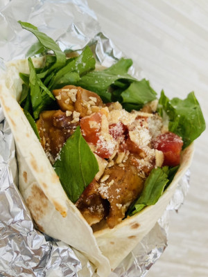 タコライスの具材にジャークチキンをプラス! 少しピリ辛なオリジナルブリトーです! 片手で食べれて、しかもボリューム満点なので主に女性の方に大人気!! 是非お召し上がり下さい♪