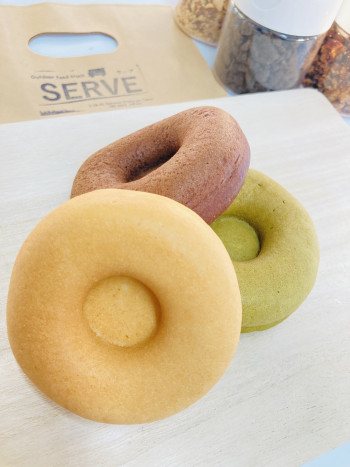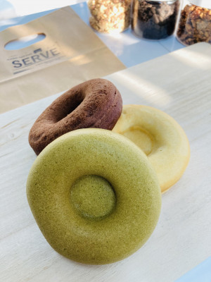 米粉、てんさい糖、豆乳を使用した身体にやさしい グルテンフリー 米粉の焼きドーナツです。 お味は ・プレーン ・ココア ・抹茶 の3種類。