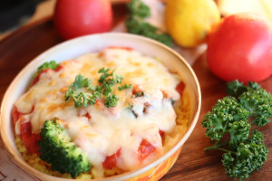 トマトの酸味をまろやかに仕上げたトマトソース! 旬の野菜とベーコンのトマトドリアです。