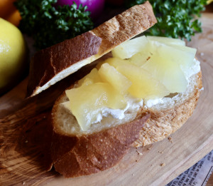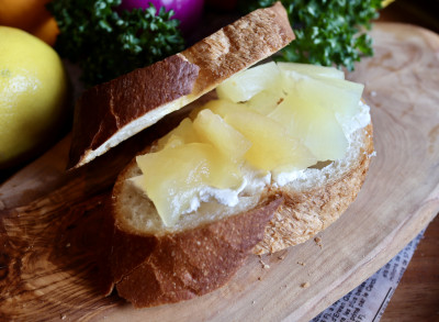 リンゴのコンポート&クリームチーズのオープンサンド! 甘酸っぱいリンゴとクリームチーズの相性はバッチリ! おやつ感覚でどうぞ!
