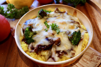 やわらかい牛肉と濃くのあるデミグラスソースととろっと温泉玉子を中に閉じ込めたドリアです。