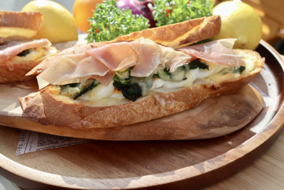 スペイン産16ヶ月熟成の生ハムのオープンサンド 具はたっぷりで regularサイズは約27㎝! smallサイズで約20cm!