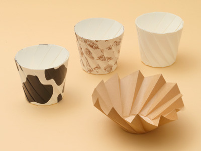 食品包装がメインの自社ならではの“映える”容器、 “おりがみカップ”で提供。 紙製だったりバイオマス素材のカトラリーであったり、 積極的に脱プラを目指して。