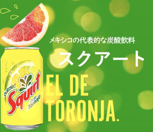 ☆メキシコ産炭酸飲料『スクアート』 ☆グレープフルーツの爽やかですっきりとした味が特徴の炭酸飲料です。 ☆タコスと一緒にどうぞ!