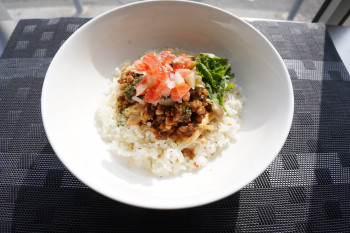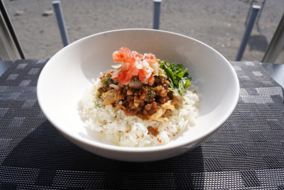 当展示自慢のオーバーライスはリピーターもい多い自慢の一品です。ひき肉としめじを醤油ベースで味付けし、最後にチーズを絡めてマイルドに仕上げています。