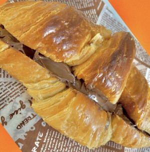 北海道のパン屋さんが作っているクロワッサン。北海道から関東へ持ってきてキッチンカーで仕上げ焼き。あつあつ、サクサク、ふわふわのクロワッサン。ココア&ヘーゼルナッツ風味のチョコをサンドしたチョコクロワッサンは絶品。大人気です。