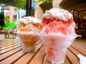大分県産のベリーツいちご使用。果実感あふれる本物の苺蜜をたっぷりかけた特製のかき氷。 新感覚のふわふわエスプーマクリームがのったかき氷はここでしか食べられない美味しさです。 時間をかけてつくられた純氷を使用し、うすくフワフワに仕上げた食感です。 さっぱり系のアイスティーやスイーツのようなキャラメルみるくなど多様なフレーバーも!