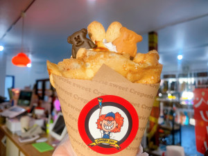 うすく焼いた生地をしっかり焼き、最後まで飽きないようしっかりクリームをはさんだクレープ。 ▪ORIGINAL CREPE ・キャラメルピーナッツ ・きなこあんこホイップ ・スパイスソーセージエッグ etc.. ▪FRUITSCREPE ・いちごチョコホイップ ・ばななチョコカスタード ・いちごキャラメルダブルクリーム etc.. ▪CREAM CREPE ・チョコホイップ ・キャラメルカスタード ・チョコクッキー etc..