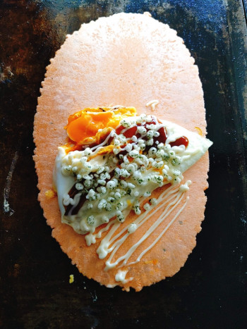 名古屋名物であるたません! エビ風味の強いお煎餅と甘めのソースで仕上げます!!