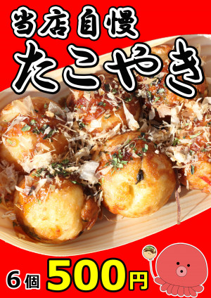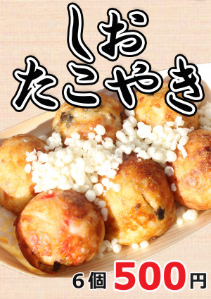 女性に大人気のしおたこやき。 ごま油風味でさっぱりした味わい。 他では食べられません!