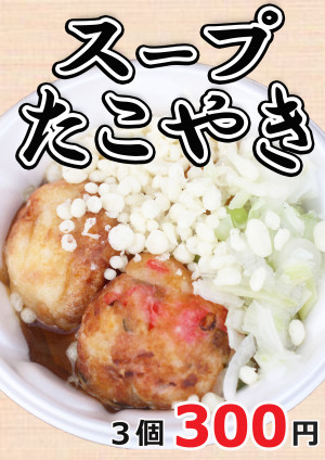 冬に大人気のスープたこやき。 身も心も温まる一品! 特製スープだけおかわりする人も...
