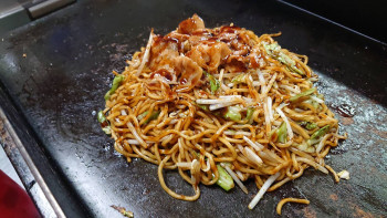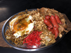 豚肉と赤タコウインナーが乗ったボリューム抜群の焼きそばです。