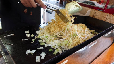 目の前の鉄板で一気に焼き上げることにより、音、匂いで食欲を刺激して思わず立ち寄ってしまう事間違いなし!