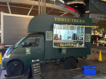THREETREESのキッチンカーはシンプルかつ清潔感もある車になっています。通常はお弁当販売ですが、アルコール販売をする際にもBARみたいな雰囲気で出す事も可能です!