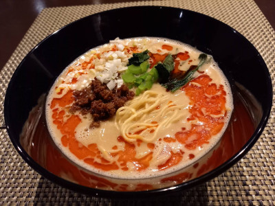 数種類の国産胡麻のみをブレンドペーストしたこだわりのスープ!胡麻の風味が香る本格担々麺となっております!