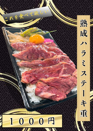 厳選素材×低音調理!!ハラミステーキ重