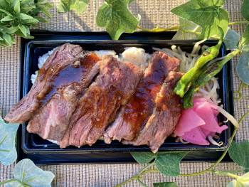 Hatch Kitchenのハラミステーキ重は口溶けと香りにこだわっています!! 厳選したハラミをじっくり低温調理する事で旨味をぎゅっと閉じ込め口溶けの良い食感に仕上げています。グリルで焼きあげたお肉は香り高く食欲をそそります。 ソースはフルーツベースとなっており 女性でも食べやすくなっています。