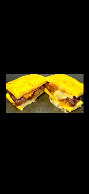 卵で食材を挟む新感覚サンド!! 卵とスパムの相性抜群コンビです! ボリュームもあり一つでお腹を満たしてくれます! 卵しか使っていないので、栄養価、タンパク質も多く取れ 糖質を抑えられます!!