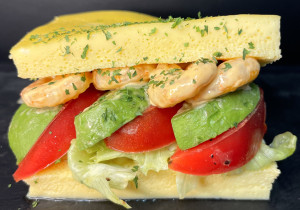 エビとアボカドをチリマヨソースに絡めて、卵で挟みました!!